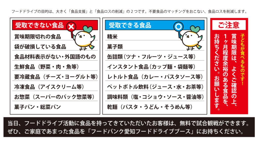 また、フードドライブにご参加いただいた方は無料にて試合観戦をしていただけます!
